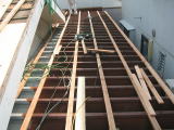 既存屋根を撤去してみると、下地合板はボロボロになっており腐食している箇所も…。既存瓦、折板屋根を